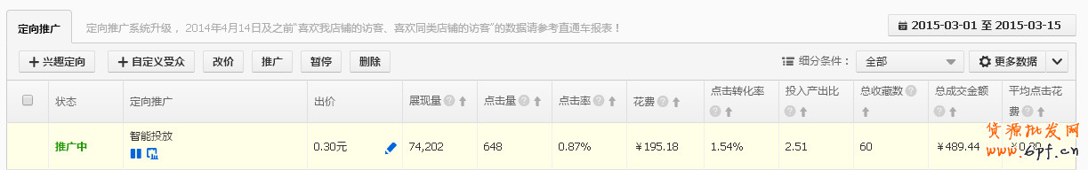 淘寶直通車定向推廣是繼搜索推廣之后的又一精準推廣方式。其優勢在于覆蓋面廣、針對性強,一定程度還能降低ppc。觀察定向方面的數據,進入定向并且轉化好的寶貝留下,定向轉化不好的寶貝就可以直接暫停使用定向推廣或者降低定向推廣的流量。