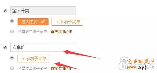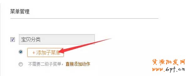 5、下面設置微淘專享的菜單,輸入要展現出來的名稱,點開添加子菜單