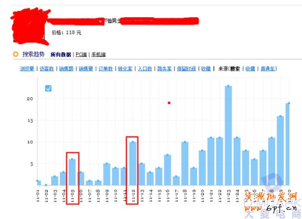以下這款寶貝是一款男裝T恤,選擇了周三的一個比較寬松的競爭環境,結果0銷量的寶貝在下架當天依然能引入大量的搜索流量。(后面數據受雙11大促影響)