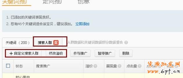 搜索人群功能和關鍵詞是緊密聯系的,他是在關鍵詞的基礎上,對流量進行了優化,使引進的流量更精準,從而來提升銷量和轉化;在直通車后臺關鍵詞右面可以找到他。
