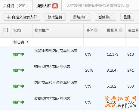 搜索人群這項功能,很多掌柜還不熟悉,下面一塊來認識一下吧;搜索人群總的分為三大塊:核心客戶、潛在客戶和自定義人群。我們先從這三個方面做一下分析。