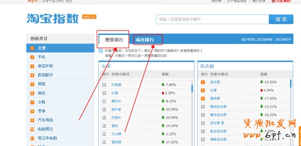 點(diǎn)擊這里可以看到搜索排行、成交排行。如下圖