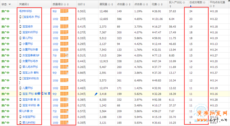 主推寶貝前期通過測試關(guān)鍵詞以及圖片,提升寶貝點擊率培養(yǎng)關(guān)鍵詞質(zhì)量得分,后期結(jié)合流量及轉(zhuǎn)化逐步把ppc控制下來。通過測試及培養(yǎng)后主推寶貝點擊率在4%左右,轉(zhuǎn)化詞的質(zhì)量得分基本都在9分以上。