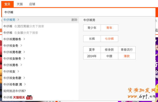 你看搜索一個關鍵字淘寶下拉框左側那里是不是有屬性詞,你把他每個下拉框的關鍵詞,二級類目詞全部拿下來,像這樣。
