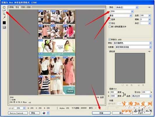 5.切完片保存為web格式,縮小比例,用切片選擇工具全選,格式為JPEG最佳