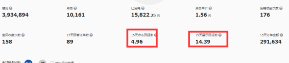 上圖為定向融合之前7天的鉆展投放整體數(shù)據(jù),花費(fèi)15822成交89筆,點(diǎn)擊單價(jià)1.56,點(diǎn)擊回報(bào)率4.96,展示回報(bào)率14.39。