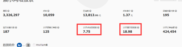 下圖為定向融合之后7天的鉆展投放整體數(shù)據(jù),花費(fèi)13813,成交125筆,點(diǎn)擊單價(jià)1.37.點(diǎn)擊回報(bào)率7.75,展示回報(bào)率18.98.