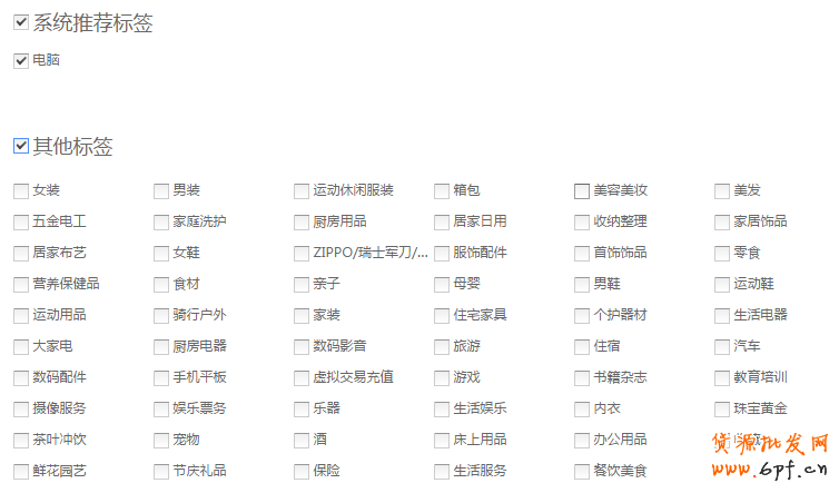 系統默認推薦:根據店鋪所屬類目推薦匹配度最高的標簽。