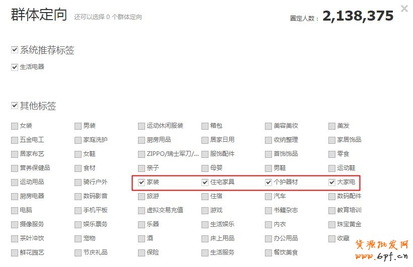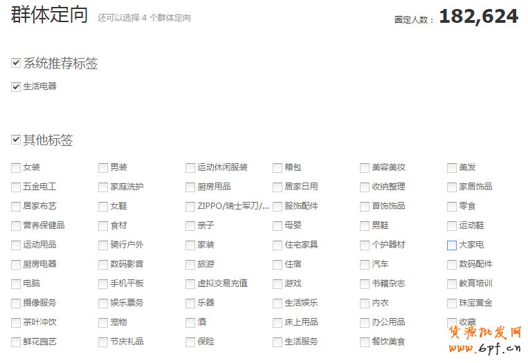 該商家屬于生活電器類目,投放的是旺旺彈窗的資源位,由于圈定的人群數并不夠多,因此選擇了相關聯的類目,可以看到前后圈定人數的變化。