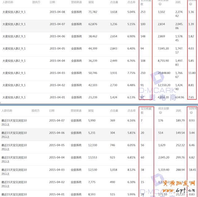 如何看到我們大數據工作效果的好壞呢?前后對比,永遠是最直接、簡單、有效的辦法。接下來我們要對店鋪做一個簡單的人群投放效果對比,數據主要來自鉆展和DMP后臺。