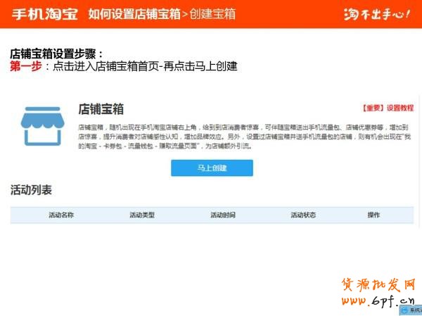 第一步:點擊進入之后,是店鋪寶箱的介紹,以及已經設置過的店鋪寶箱活動的列表,可以在這邊進行活動創建及刪除。