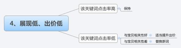 分析:展現(xiàn)量低、出價低,根據(jù)關(guān)鍵詞點(diǎn)擊率以及排名位置進(jìn)行優(yōu)化。