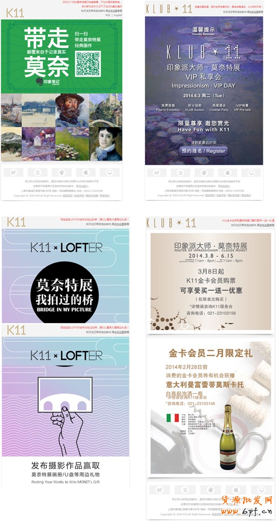 如果要問去年上海藝術界最熱門的事件之一,上海K11莫奈特展受之無愧。這組EDM創意旨在為印象派大師莫奈中國展預熱,與上海K11一貫的郵件設計風格異曲同工,以大幅海報特寫的方式,盡情詮釋藝術、人文與自然之間的美好關系。從莫奈家喻戶曉的作品出發,衍生出K11 X印象筆記 , K11 X LOFTER的相關品牌合作,豐富莫奈特展的周邊活動,誠邀熱愛藝術的您賞光。
