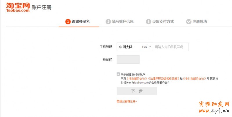 ●登錄淘寶網首頁,點擊頁面左上方的“免費注冊”后,就會彈出一個新頁面。在新頁面上輸入手機號碼,在“同步創建支付寶賬戶”旁邊打鉤,點擊“下一步”按鈕,按要求綁定銀行卡、設置密碼、起用戶名即可,這一系列操作完成后,就完成了用戶注冊。
