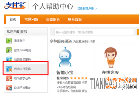 4.支付寶登錄密碼就找回了,如果是支付密碼呢?在登錄支付寶后,進入“幫助中心”,選擇“找回支付密碼”。
