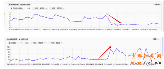 首先我們把關鍵詞的出價從原來的四塊,降到2塊,降了一倍,然后拉高移動端的比例,保持移動出價穩定不變。通過一段時間發現。點擊率確實有提高,如圖,經過調整后,點擊率確實提高明顯,而且比想象的要好。可見我們的思路是正確的。