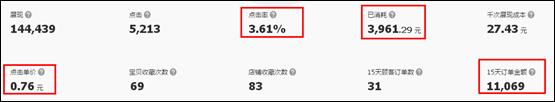 可以看出在消耗差不多的情況下,cpc從最開(kāi)始的1.14元到現(xiàn)在的0.76元,cpc是下降了,點(diǎn)擊率從0.68%到3.61%,點(diǎn)擊率可謂是蹭蹭的上漲。