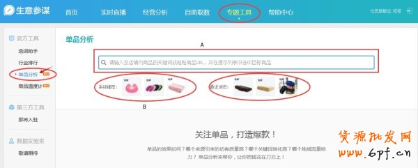 首先進(jìn)入專題工具下的單品分析模塊,生意參謀提供了三種查詢方式:單品鏈接查詢、系統(tǒng)推薦查詢、最近瀏覽查詢。