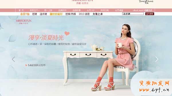 如下圖,淺藍色的背景圖,模特身穿夏季的服裝,與輪播圖片的主圖“淡夏時光”相符合,與網店主打的夏裝也是相符。