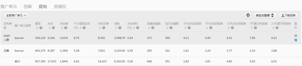 站內,站外選擇的定向是一樣的,但是在定向的消耗能力上,站內訪客定向和DMP定向的消耗基本在1:1,而站外資源位是訪客定向消耗大一些,由此可以看出站外資源位用于拓展店鋪流量和店鋪人群是非常有利的。
