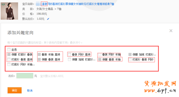 3) 興趣標簽就像關鍵詞一樣,可以將轉化好的標簽,組合到推廣標題中,這樣增加了寶貝在這個標簽上的權重,有助于提高轉化率;