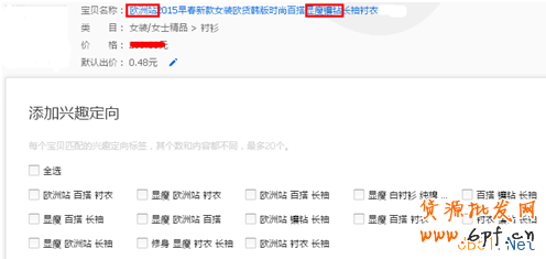 3.在寶貝屬性較為完善的情況下,定向的小標簽也會比較多,可以多選和全選。