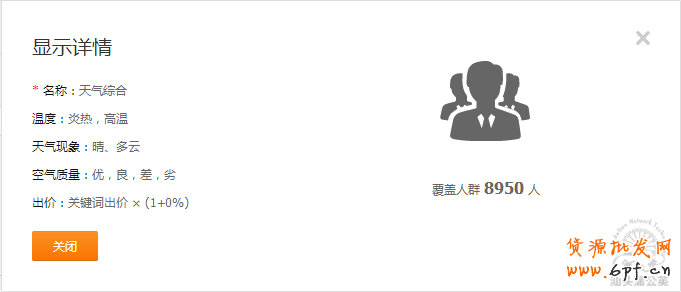這個(gè)維度是僅添加天氣現(xiàn)象的中“炎熱、高溫、晴、多云、空氣質(zhì)量“進(jìn)行測(cè)試。由于這個(gè)人群搜索設(shè)置是融合性的維度,所以流量較為精準(zhǔn),屬于低流量引流。