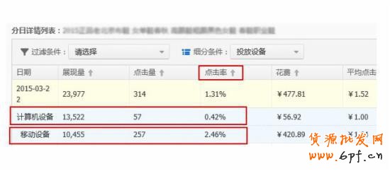 查詢直通車寶貝的每個關鍵詞的無線和PC點擊率
