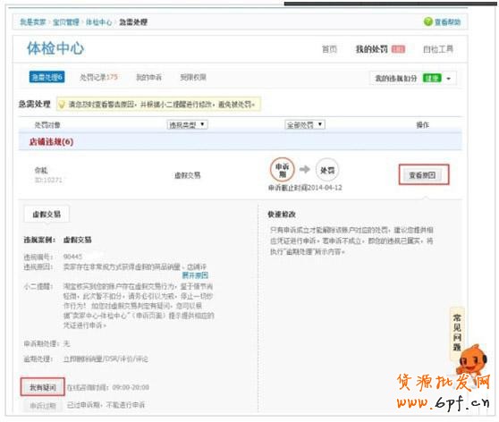第二步:找到虛假交易訂單,點擊“查看原因”,會看到處罰詳情,若發現有問題,可以在線咨詢淘寶客服。