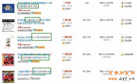 對于這種形式的關鍵詞,淘寶會認為他是一個詞,在展示搜索結果時,這個詞不管幾個字,必須完全連在一起并出現在標題中的寶貝才有被展示的機會。不連在一起的不能被提取出來,比如我們在淘寶的搜索框里面搜索“三輪車”這個關鍵詞: