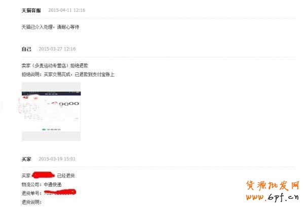 這個時候,賣家只能拒絕退款,但是淘寶后臺只認物流,顯示寶貝已經退回,我們拒絕退款是不合程序的,然后,不可避免的事發生了,小二介入了。