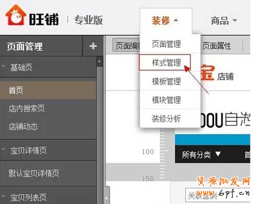 1、進入賣家中心——店鋪裝修——點擊首頁——裝修——樣式管理