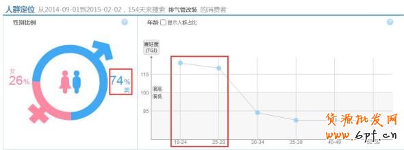 1、廣大的男性消費群體追求改裝-混響體驗,遠高于女性消費群體(男性消費群體占比74%);剩余26%的女性消費群體不排除為老公或自己的愛車購買排氣管的需求,但我們需要做的不是混合引進流量,我們需要精準針對性,(圖例:性別單選-男),符合我們店鋪購物群體的性別。
