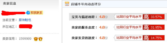 店鋪等級:2金冠;好評率:99.87%;主營類目:高端女裝。