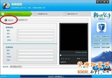 2.下載完成后,運行該軟件,并點擊“視頻文件截取” 選擇“添加文件”。