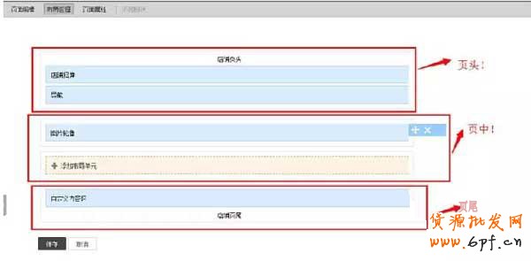 進入網店裝修后臺之后,我們就會看到店鋪的頁面分為三個,就是頁頭、頁中、頁尾。