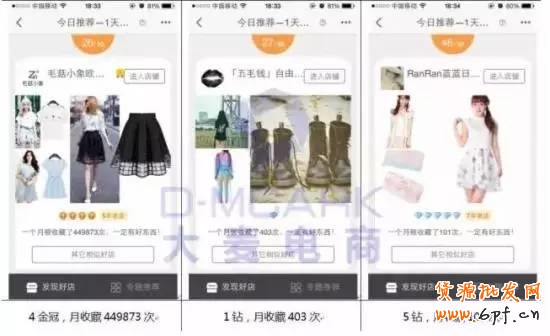 很多賣家存在以為就是只有收藏這個貌似沒有什么用,小編在這里告訴大家用處大著呢,大家應該對手機淘寶首頁上的每日好店版塊有印象吧,每日好店的版塊對于同一個ID的用戶來說,每天展示的店鋪都是不一樣的,最明顯的兩個入口分別有50個和30個的店鋪展位,而這兩個入口是可以重復展示同一個店鋪的。而通過長時間的測試,結果發現每日好店版塊的定向效果是做得相當不錯的,都是根據用戶近期的瀏覽和購買的產品價格和風格進行定向展示,基本每天都可以在每日好店版塊找到至少3個喜歡的新店鋪,而80個展位中最多可以獲得兩個展位,也就是對每個用戶有至少7.5%的幾率吸引進店,從而產生收藏甚至轉化的行為。大家是不是覺得很有用處了呢!