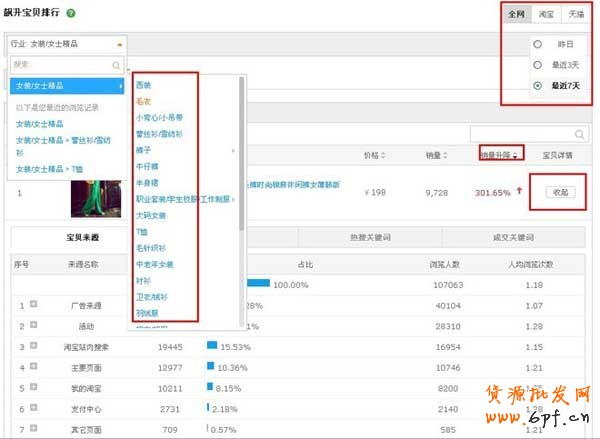 還是一樣,熱銷排行有可能是刷出來的,但是飆升的話,刷的概率就小很多,所以,我們可以看看我們相應的類目下,有哪些熱賣的產品,以及該寶貝的流量來源!