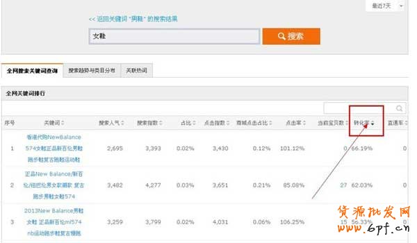 搜索“女鞋”按轉化率排序,然后往下拉你就會很容易找到了!