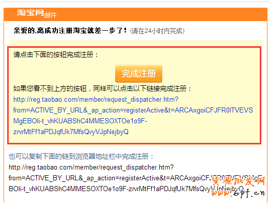 進入注冊郵箱后,會看見由淘寶網發送過來的郵件,打開該郵件并點擊完成注冊或鏈接,如下圖。