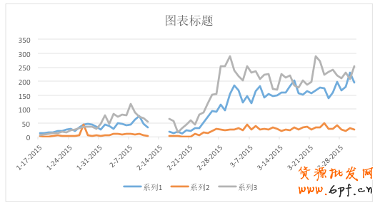 單品從2015年1月17日開始運作,藍色,橘色,灰色分別是PC淘寶搜索,PC天貓搜索,無線淘寶搜索。