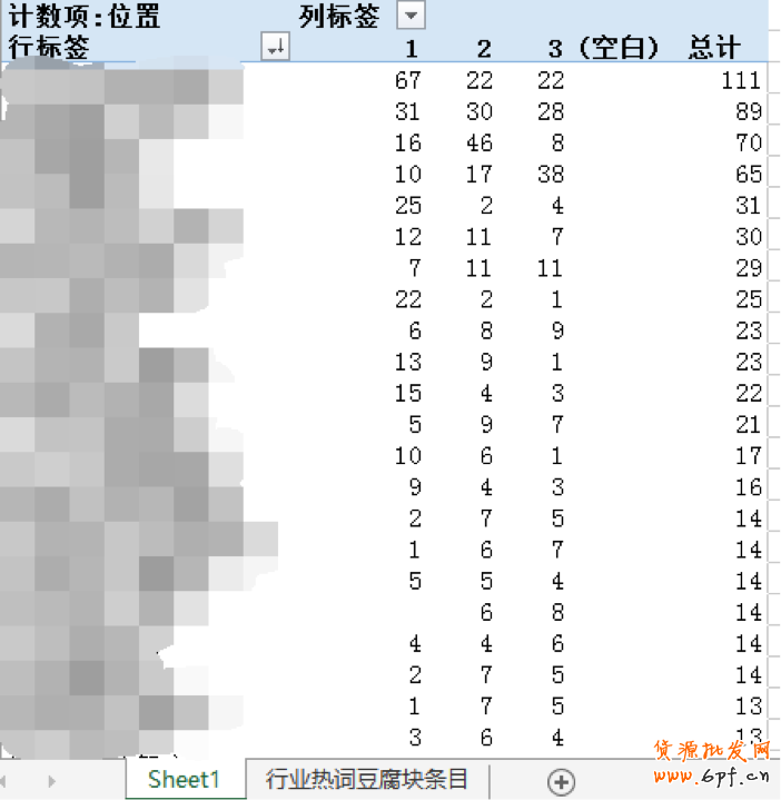 方法二,下面這張圖是行業TOP500詞豆腐塊數據表
