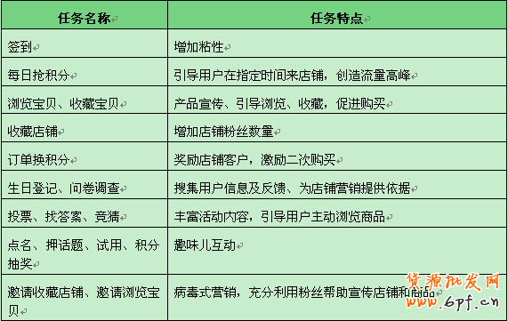 活動設(shè)置好后用戶登錄手機淘寶訪問賣家店鋪首頁,點擊無線任務(wù)的菜單,進(jìn)入到賣家設(shè)置的任務(wù)列表頁面按照要求完成任務(wù)獲得積分,獲得積分后通過點擊獎品菜單可以查看賣家設(shè)置的獎品信息,如果積分夠的話可以參與兌換獎品。只要獎品有吸引力,活動內(nèi)容經(jīng)常更新,有創(chuàng)意,用戶會經(jīng)常來參與店鋪的活動,并且樂此不疲。如何引流是賣家關(guān)心的問題,那么如果將引來的流量留住并有效地轉(zhuǎn)化更加關(guān)鍵,無線任務(wù)就可以很好的黏住用戶,提高轉(zhuǎn)化。 附: