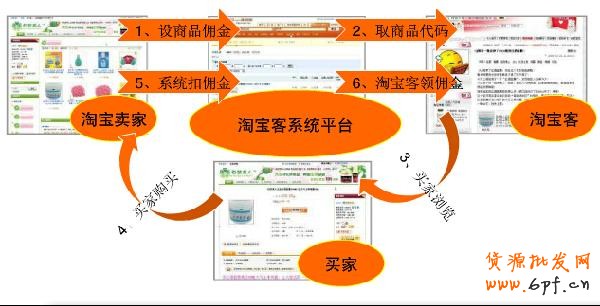 淘寶客是通過淘寶手中的資源,讓買家點擊淘寶客提供的鏈接完成交易的這么一個過程,淘寶賣家按照比例將傭金支付給淘寶客。是以點擊付費為依據的一直推廣方式。淘寶客的主力軍包括個人和網站,比如說,博客主或者一些門戶網站,比價網站等等。下面看看淘寶客工作的整個流程: