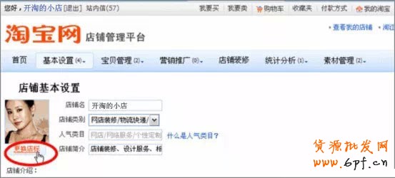 3.點擊“更換店標”,在這里把已經設計好的店標圖片放上去。(如下圖)