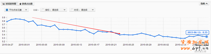 (3)要適當的提升點擊率高的關鍵詞力度,這樣在提升流量的過程中,寶貝的點擊率也能得到提升;而隨著寶貝點擊率的上升,寶貝中關鍵詞的ppc都會有明顯的下降。