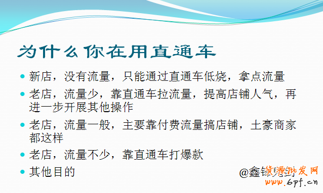 不同層級的賣家操作直通車前,清楚自己為什么要操作直通車,也要考慮清楚,開車前幾個重要的點,這樣直通車上車后,段時間權重能提上去,各方面的數據比較漂亮些。而不用等著,自己搞的一團糟,卻發現不了問題。