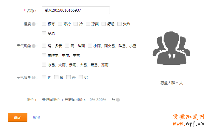 在搜索人群下面的人群選項框中直接點擊“天氣人群”,就可以進入下面的設置頁面:
