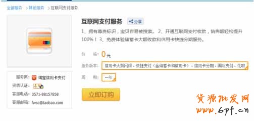 如果滿足條件,單擊進(jìn)入后會跳轉(zhuǎn)到賣家服務(wù)中的“互聯(lián)網(wǎng)支付服務(wù)”我們根據(jù)相關(guān)提示訂購該服務(wù)