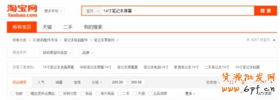 在整個(gè)14寸筆記本屏幕的搜索中,共有4649款寶貝,整個(gè)類目的競(jìng)爭(zhēng)方面較之大類目小了很多。